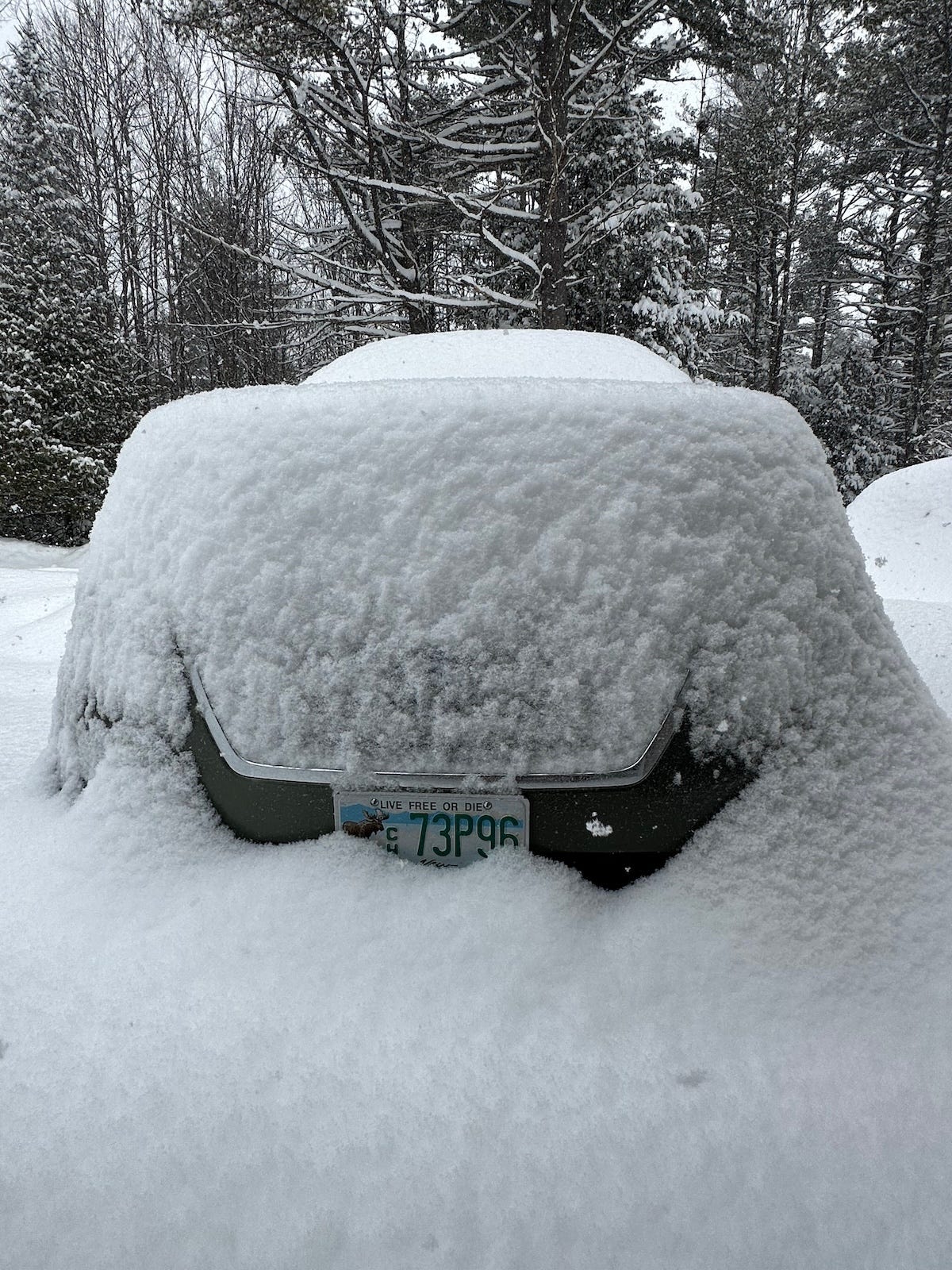 My “rational mind” thought, “Maybe there was some clear-cutting there, and that’s just the shape it’s taken because of the snowfall.” I wonder if he will still be there come spring.