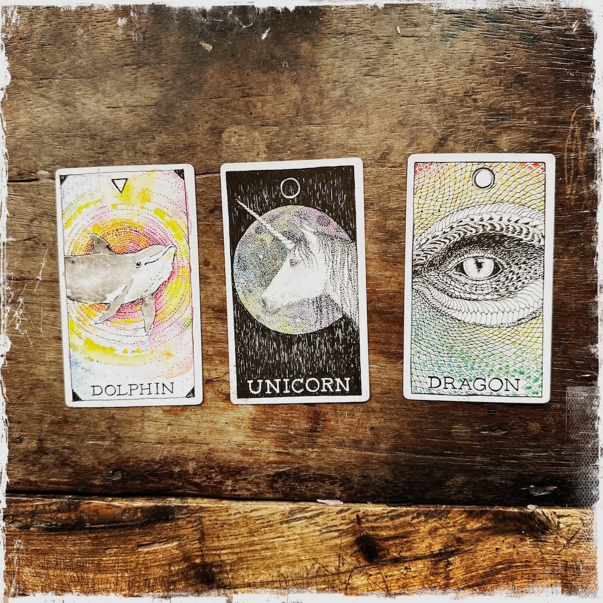 I shuffled the cards and picked the Dolphin. It’s a beautiful card that shows up for me a lot. I decided to pick another one and ended up getting the Unicorn. Another favorite of mine. I love that Kim Krans included the Unicorn because, of course, I do believe they once existed. Might they still? Scotland evidently believes that they did, or they do, because they are the official national animal.